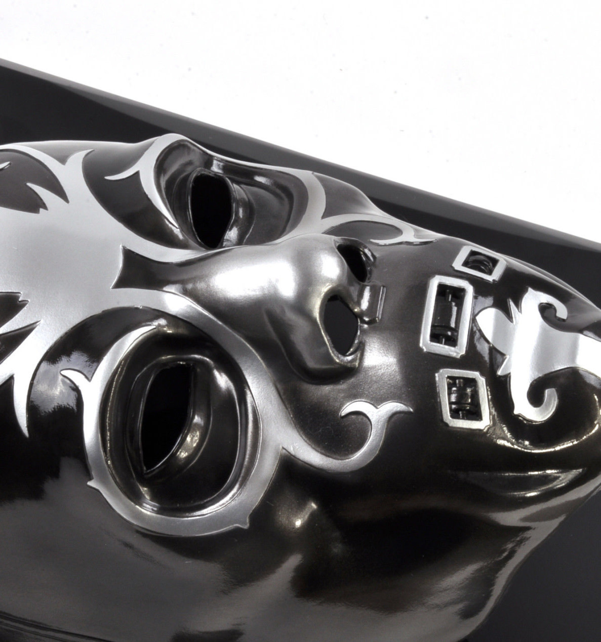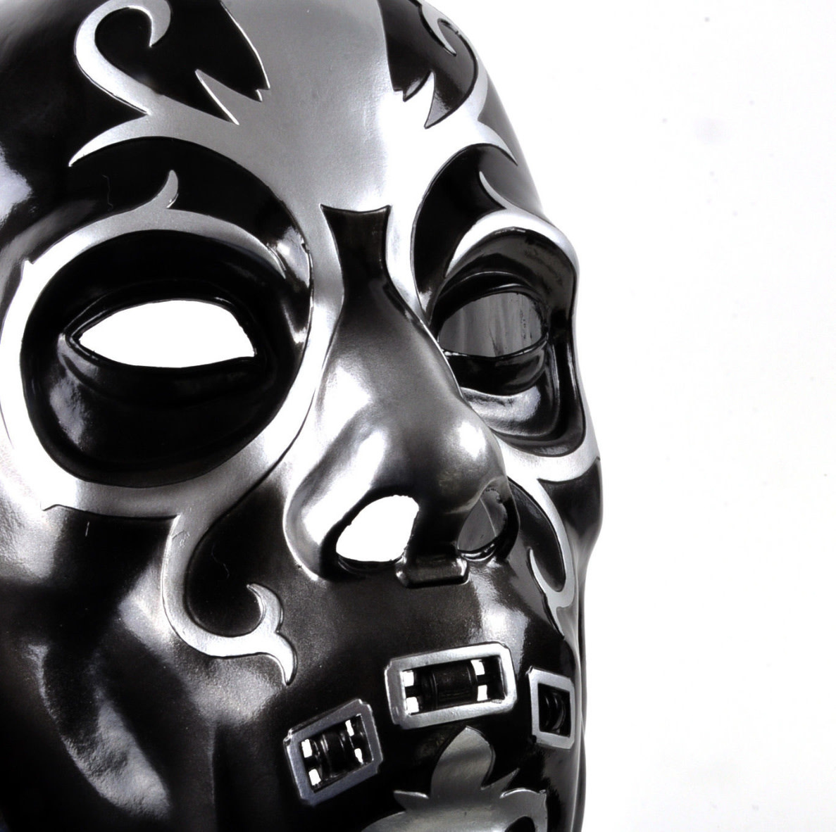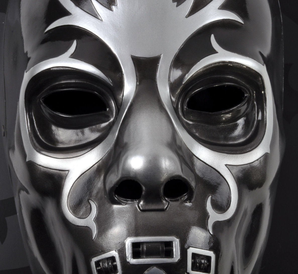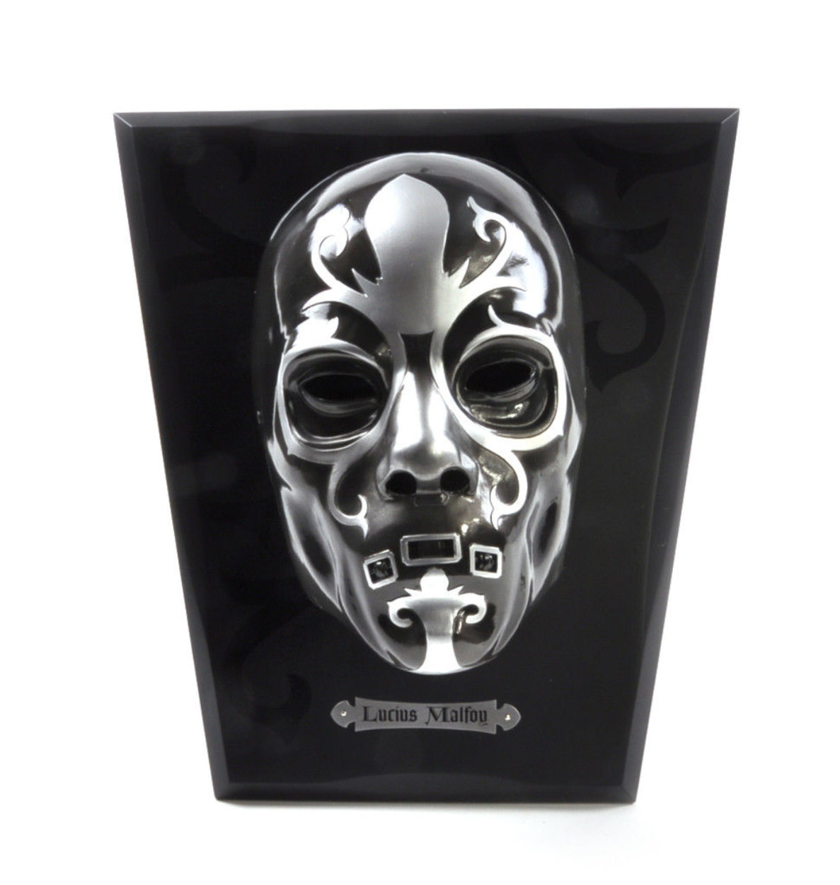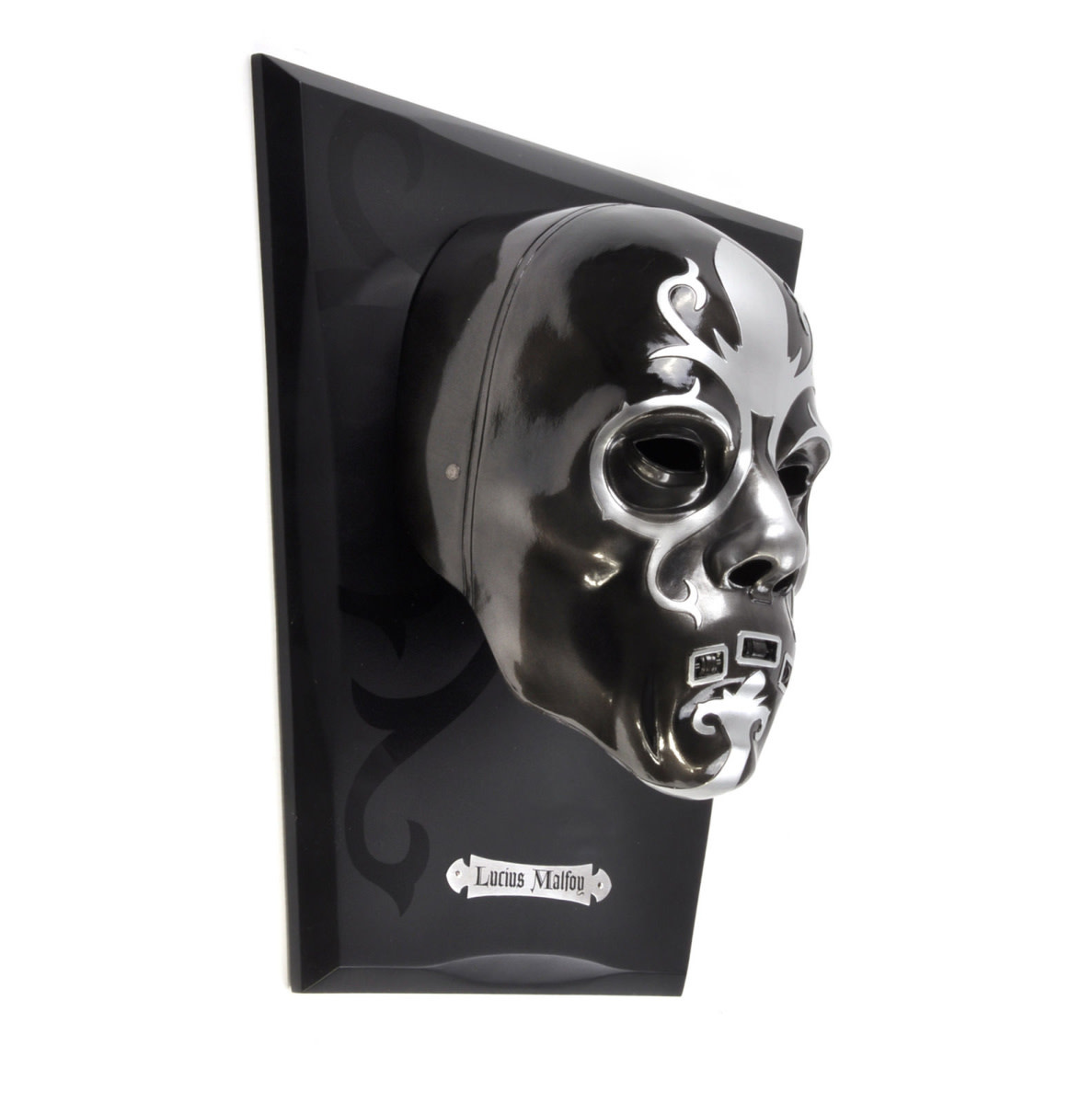 Harry Potter Death Eater Mask Lucius Malfoy This authentic replica of Lucius Malfoy«s Death Eater mask measures approx. 23cm and comes with a wooden display.