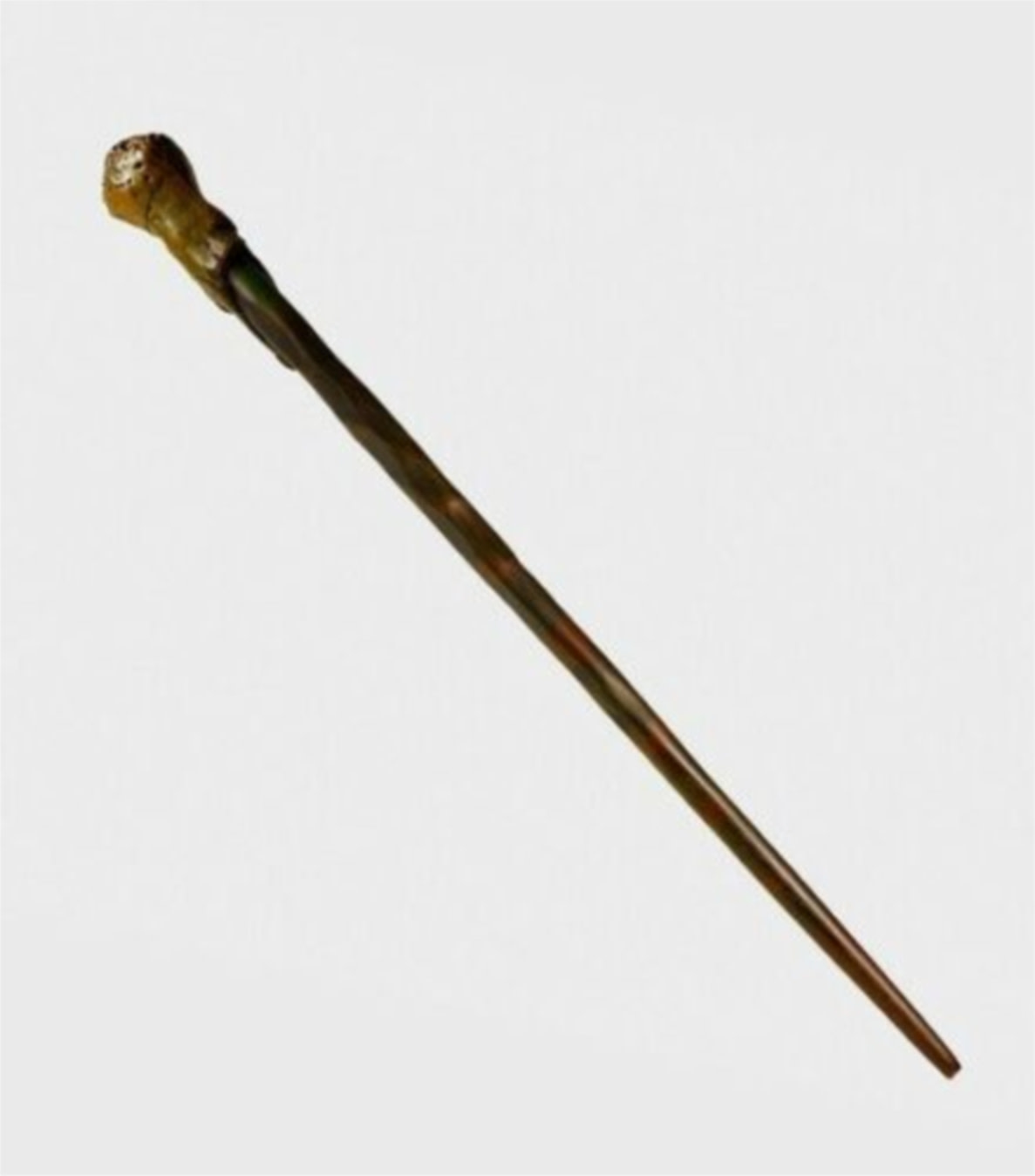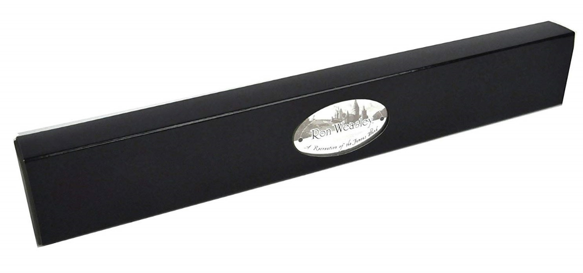Ron Weasley's wand Replica in polyresin of Ron WeasleyÕs Wand in "Harry Potter and the Deathly Hollow" This authentic recreation of Ron's wand from the Harry Potterª films is sculpted in resin and measuresÊ35.3cm long. Wand box also included. This item is a fragile collectible wand. Not intended for use as a toy.