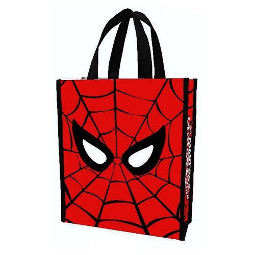 Spider-Man Marvel Small Recycled Shopper Tote The Spider-Man Marvel Small Recycled Shopper Tote shows a cool design of Spidey's face from the comic book series along with The Amazing Spider-Man logo. 30CM tall x 25cm long 10cm wide.